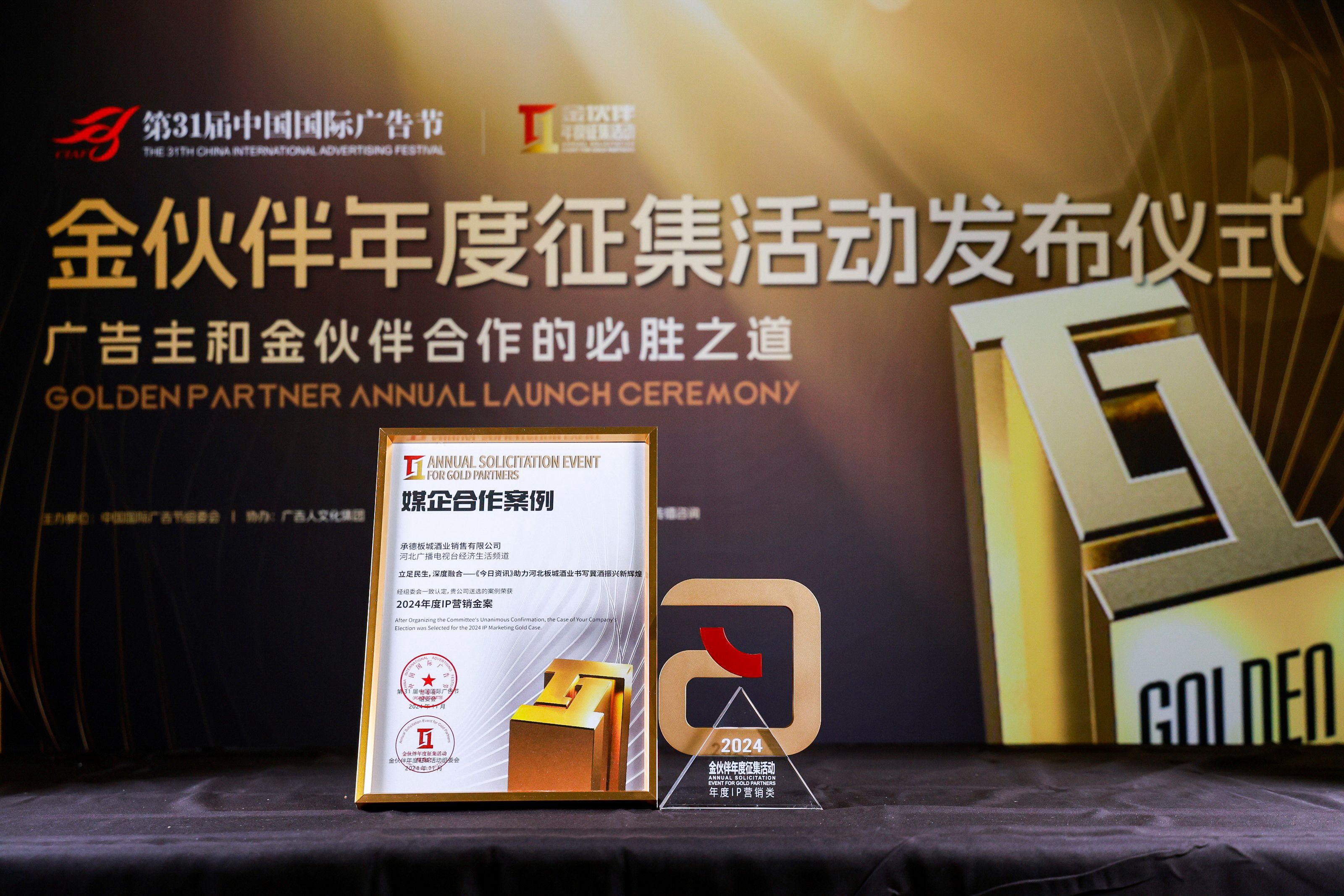 板城酒業(yè)與河北衛(wèi)視頻道合作案例【河北衛(wèi)視聯(lián)合廣電廣告助力板城酒業(yè)農(nóng)民豐收節(jié)暨龍印秋藏大典】入選31屆中國國際廣告節(jié)·2024廣告主金伙伴年度征集發(fā)布儀式·媒企合作案例·年度創(chuàng)新營銷金案。