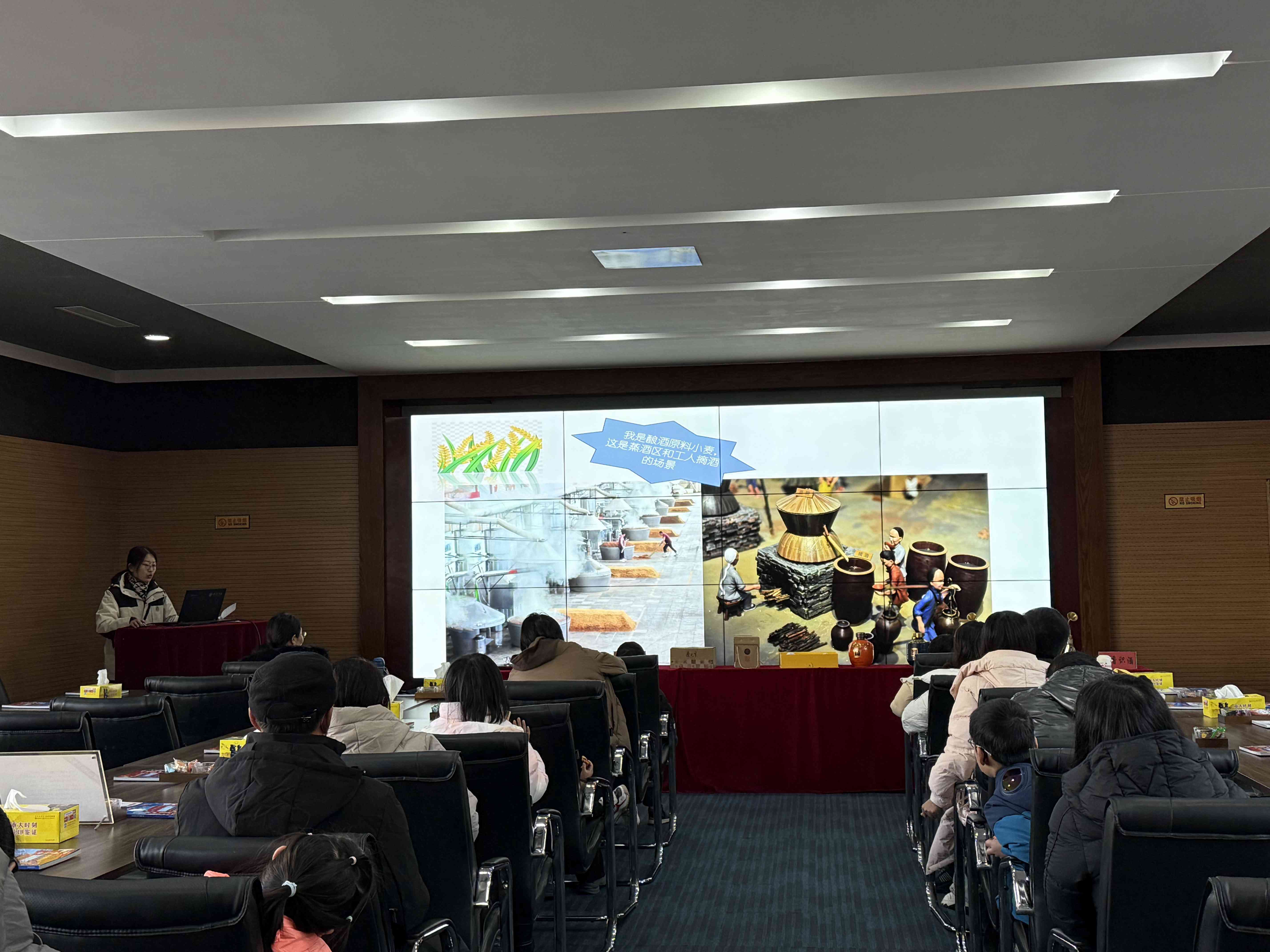在釀酒車間,游客們得以沉浸式感受傳統(tǒng)的國家非物質文化遺產(chǎn)——老五甑釀造技藝。目睹了佳釀的誕生過程,孩子們更是對釀酒過程充滿了好奇和興趣,紛紛向講解員提問,現(xiàn)場熱鬧非凡。
