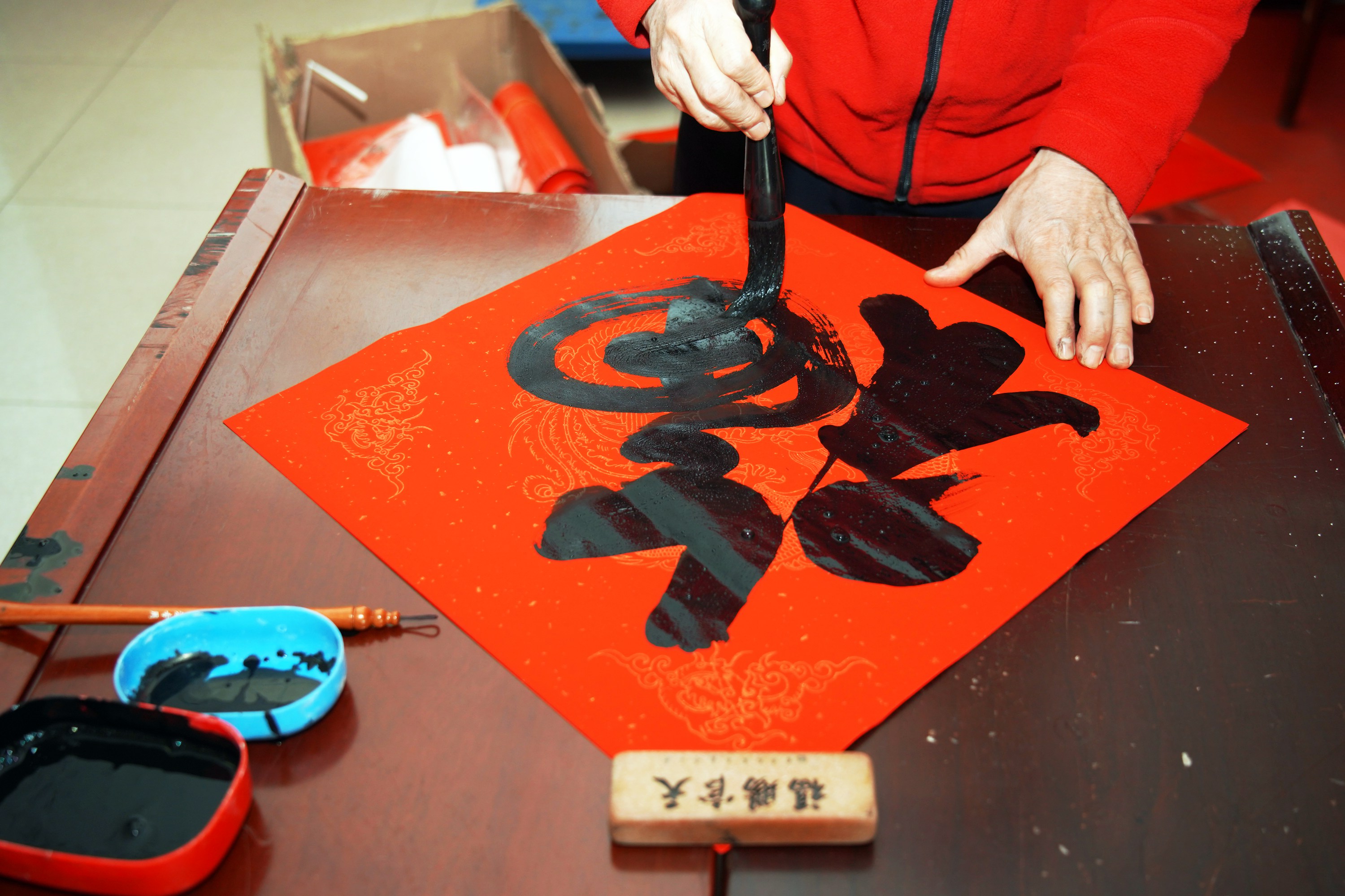 書寫對聯(lián)迎新春,奮筆揮毫送和順。自12月24日,承德縣“文化進萬家歡喜過大年”暨“諸事和順迎新春幸福春聯(lián)送萬家”文化惠民系列活動啟動以來,板城酒業(yè)攜手承德縣文聯(lián)、承德縣書法家協(xié)會共同走進承德縣華明產(chǎn)業(yè)園、承德縣中心廣場、承德縣六溝鎮(zhèn)葛杖子村、承德縣信訪局等基層社區(qū)、鄉(xiāng)鎮(zhèn),為全縣城、鄉(xiāng)鎮(zhèn)居民送上了一份精心烹制的“文化大餐”。
