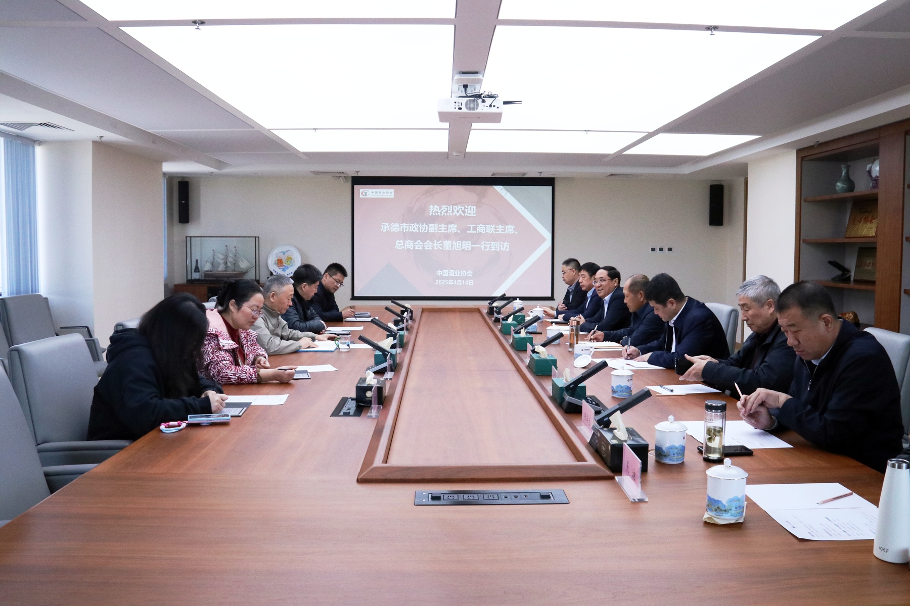 4月14日,承德市政協(xié)副主席、工商聯(lián)主席、總商會(huì)會(huì)長(zhǎng)董旭明,承德市發(fā)改委副主任朱興允,承德市酒業(yè)協(xié)會(huì)理事長(zhǎng)劉磊斌,秘書(shū)長(zhǎng)陳建強(qiáng),河北板城酒業(yè)黨委書(shū)記、總經(jīng)理張春生,河北板城酒業(yè)總經(jīng)辦主任吳迪及承德酒業(yè)同仁一同走進(jìn)中國(guó)酒業(yè)協(xié)會(huì),雙方就地產(chǎn)酒發(fā)展、產(chǎn)區(qū)建設(shè)、品質(zhì)表達(dá)、文化價(jià)值等方面進(jìn)行了座談交流。