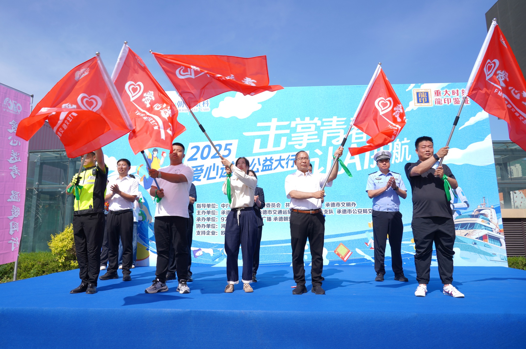 愛心旗幟接力傳遞,象征公益精神的代代相傳