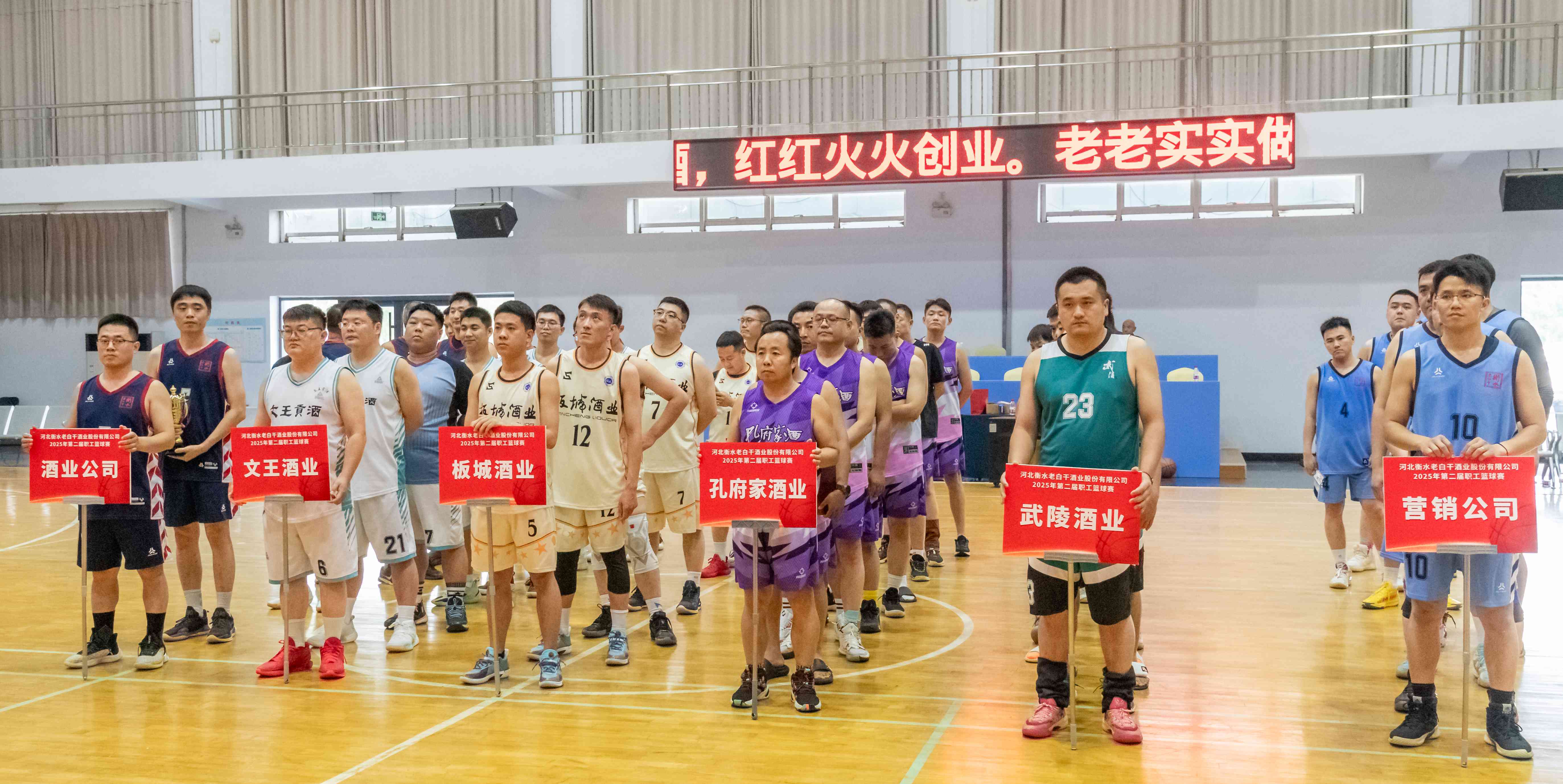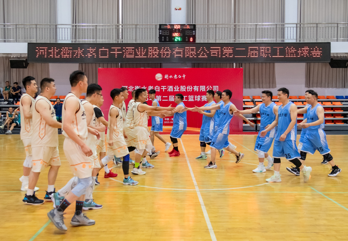 6月25-26日,河北衡水老白干酒業(yè)股份有限公司第二屆職工籃球賽在衡水圓滿落幕。來自衡水老白干酒業(yè)及其旗下板城酒業(yè)、孔府家酒業(yè)、武陵酒業(yè)、文王酒業(yè)等六支精英代表隊齊聚一堂,共同演繹了一場精彩絕倫的體育盛宴。